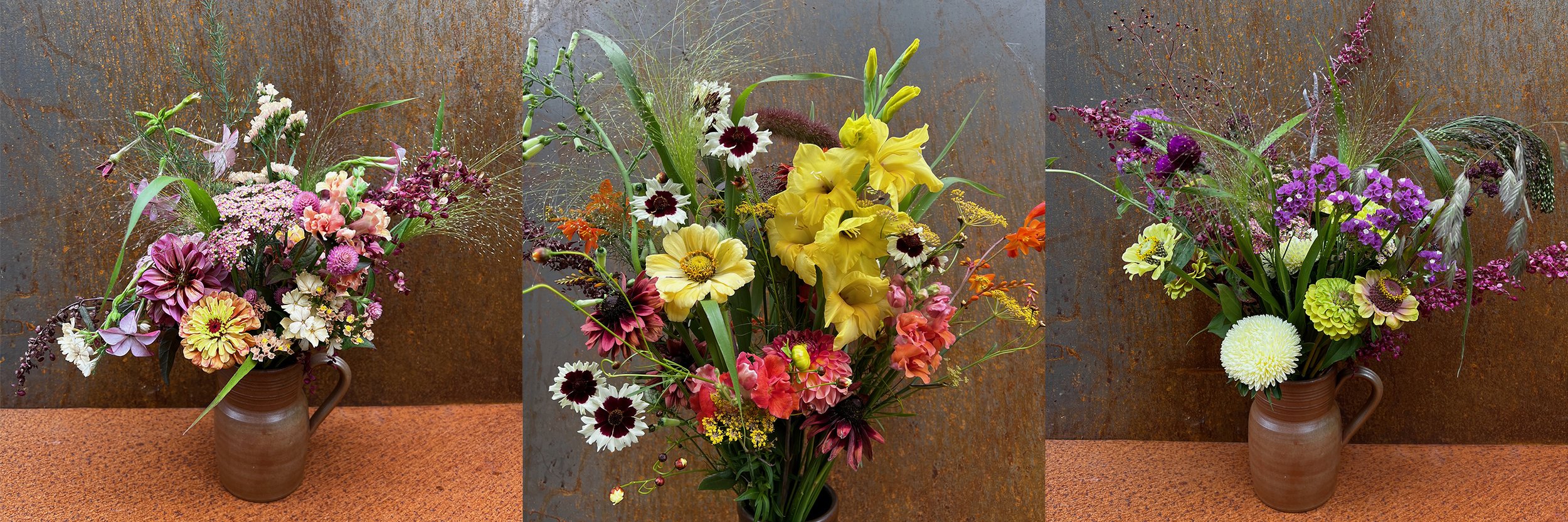 5 of 10 keer per seizoen (mei-okt) een gemengd boeket in het formaat van jouw keuze met de mooiste natuurvriendelijk geteelde seizoensbloemen, elke keer anders
