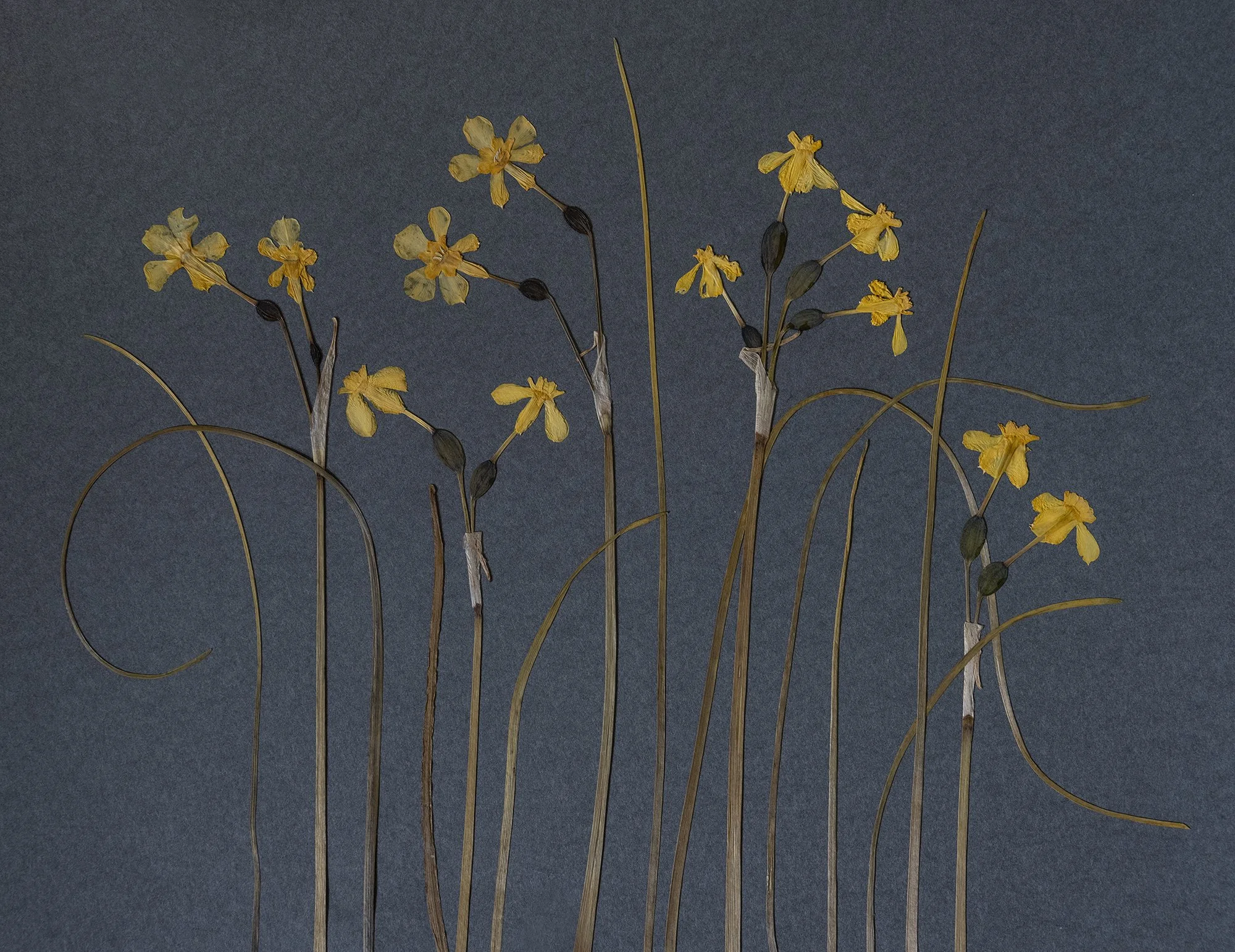Een minicupje en mini-kroonblaadjes op een lange ranke steel: ik was meteen verkocht toen ik dit heerlijk geurende narcisje voor het eerst in het BloemenKabinet van collega Carien van Boxtel zag en stelde me al helemaal voor hoe zo’n narcisveldje op papier zou kunnen worden. Ik was dan ook enorm verheugd toen ik ze een tijdje later uit mijn bloemenpers haalde, met dezelfde goudgele kleur en sierlijk krullende blaadjes.