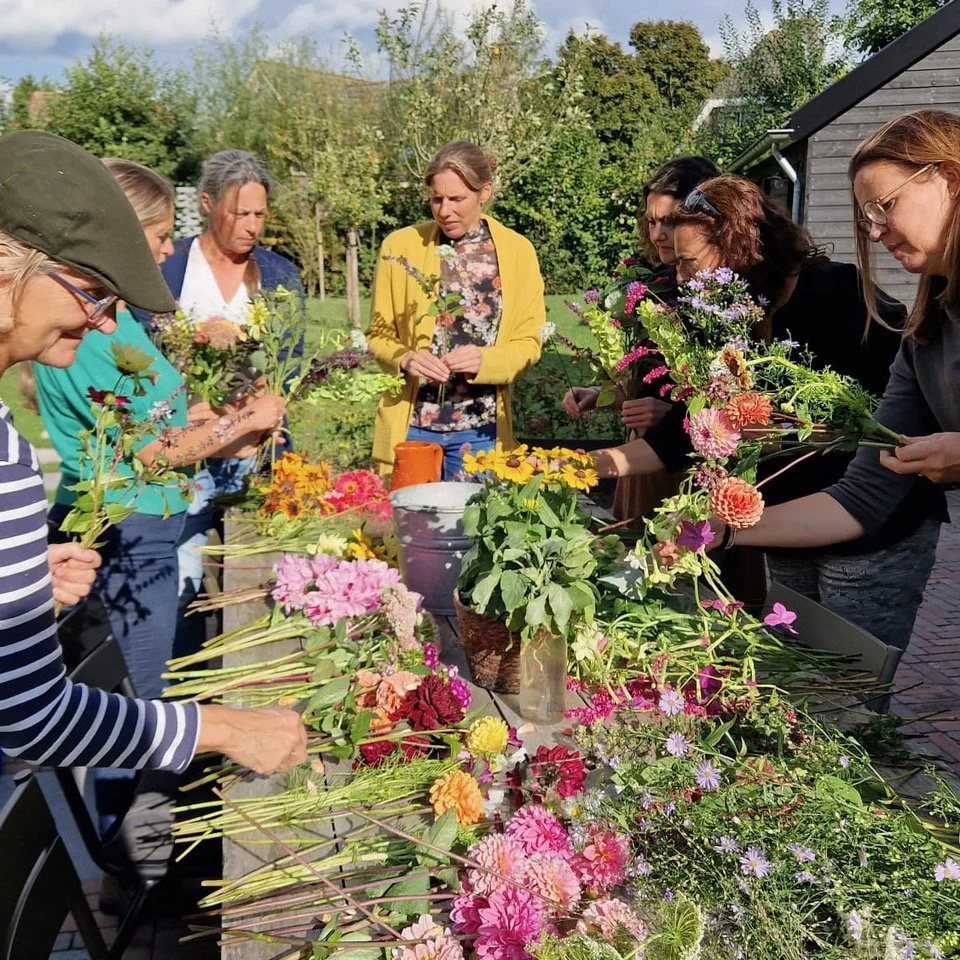 Handig om te weten: Maximaal 8 deelnemers (de workshop gaat door bij minimaal 4 deelnemers). De diverse programma-onderdelen vinden afhankelijk van het weer binnen of buiten plaats. We starten bij Enspijk Buiten en wandelen in de tweede helft van de workshop naar de pluktuin op zo’n 300 m afstand, dus trek geschikt schoeisel aan. Bij enigszins regen gaat het plukken door, maar mocht het met bakken uit de lucht komen, blijven we binnen en zorg ik vooraf voor een paar emmers plukbloemen zodat je van daaruit je boeket kunt samenstellen.